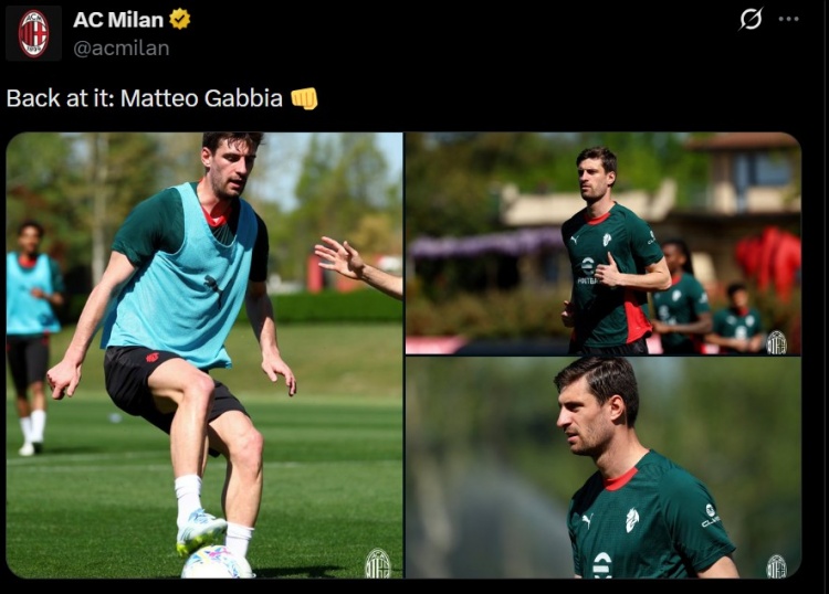 加比亚自2月底米兰对阵帕尔马的比赛后便一直因伤缺阵。今天,他重返合练,正式步入复出的最后阶段。
